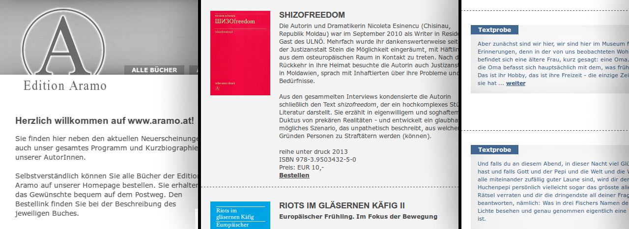 Die Website - leicht zu finden unter www.aramo.at - bietet unter anderem:» Textproben aller Aramo-Bücher
