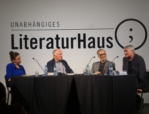 Birgit Birnbacher, Fahim Amir und Kurt Kotrschal bei TransflairNoch vor Coronazeiten haben wir das Bändchen Gesellschaften im Umgang mit der Natur und anderen Außenseitern mit Beiträgen von Fahim Amir, Anna Weidenholzer, Christoph W. Bauer, Stefan Gmünder, Birgit Birnbacher und Sabine Gruber herausgebracht (Edition Aramo). Dazu planten wir eine Folge der Serie "Transflair", mussten sie jedoch wegen der Pandemie sogar mehrmals verschieben. Nun aber saßen Birgit Birnbacher, Fahim Amir und Kurt Kotrschal auf dem Podium.